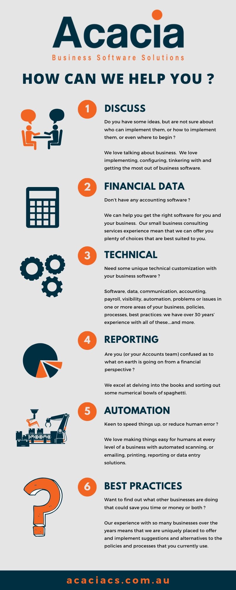 At Acacia Business Consulting Services we specialize in small business consulting services, business software solutions and helping you get the most out of your business.