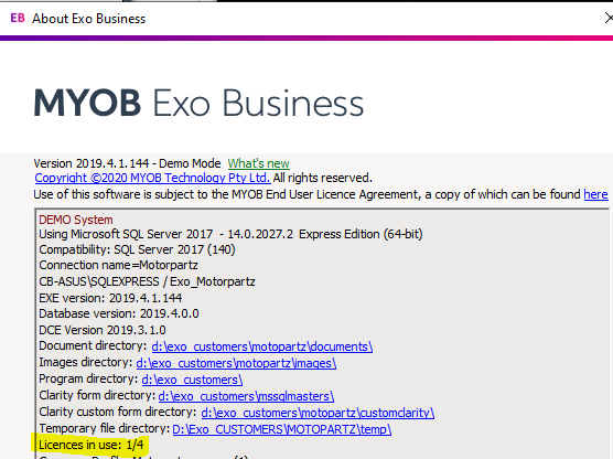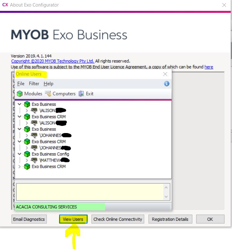 - Ensuring everyone is logged out of MYOB Exo in order to do some work on your database,