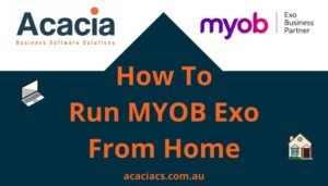 If you need a hand with enabling your staff to run MYOB Exo from home, or from a location other than in your usual office, please Contact Us or call us on ph +61 3 8560 5220 and our team at Acacia Consulting Services will be only too pleased to help.