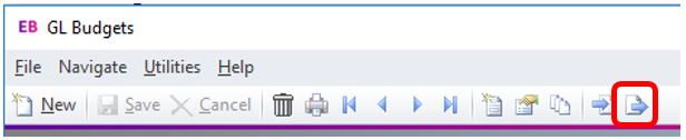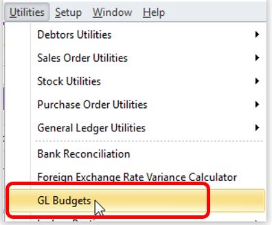 Click on the drop-down menu “Utilities” – “GL Budgets” (as per Step 1 above).