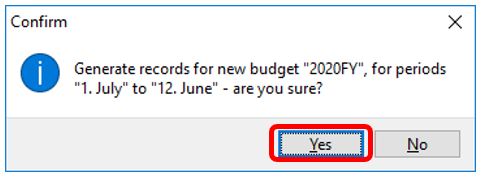 Confirm creating the new budget (click “Yes”)