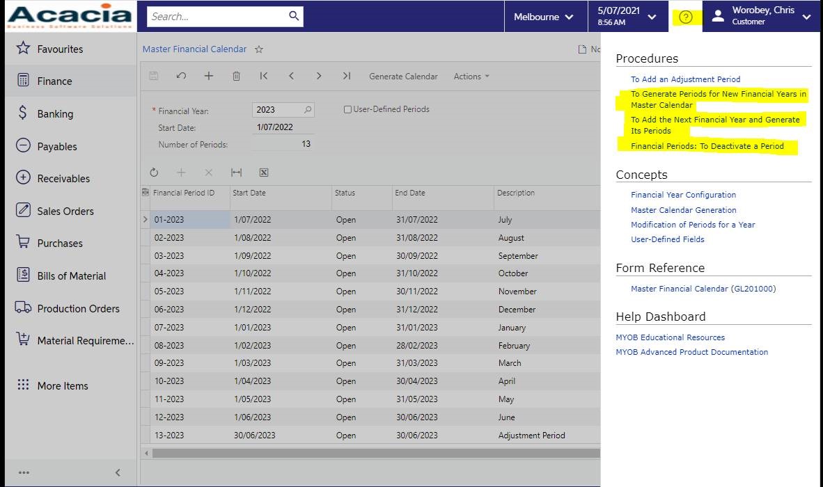 MYOB Advanced End Of Financial Year Roll Over Procedures