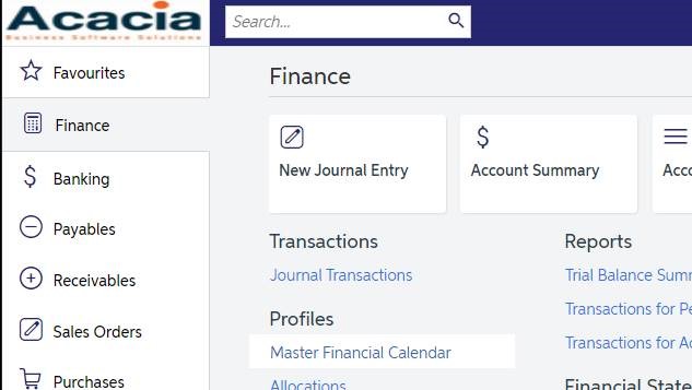 a) To activate a new financial year, go to Finance > General Ledger >Work Area > Manage and click on Financial Periods.