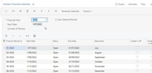 b) Under the Financial Period Screen click on “+” sign and then click on Generate Periods.