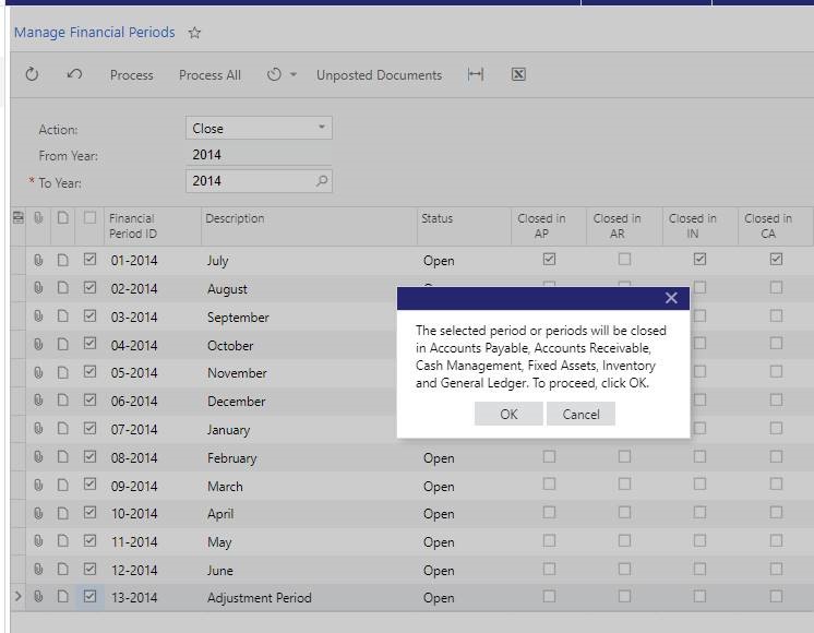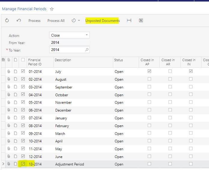 Note – In case of 13th financial period i.e. adjustments needs to be closed off as well.