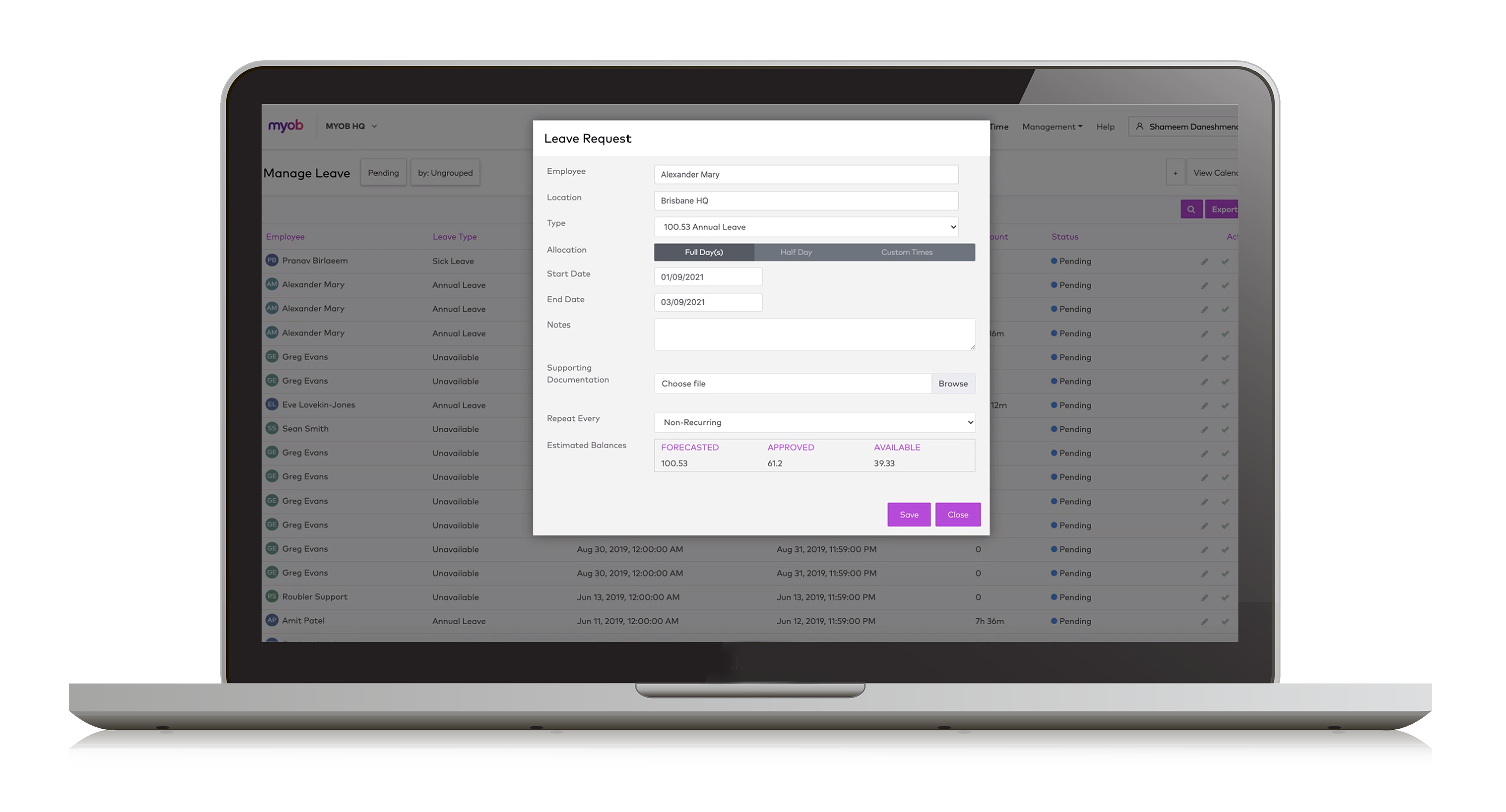 Easily manage time and attendance tracking, timesheets and approvals. Our software syncs with payroll for accurate data and correct pay runs every time.